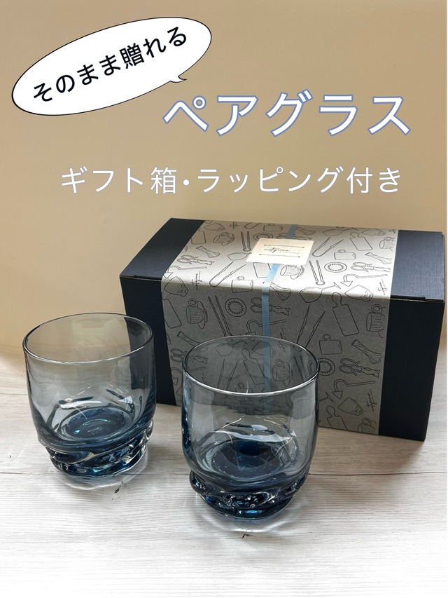 【ギフトに!そのまま贈れるペアグラス】能登藍(のとブルー)流 ロックグラスペア NBK1-6