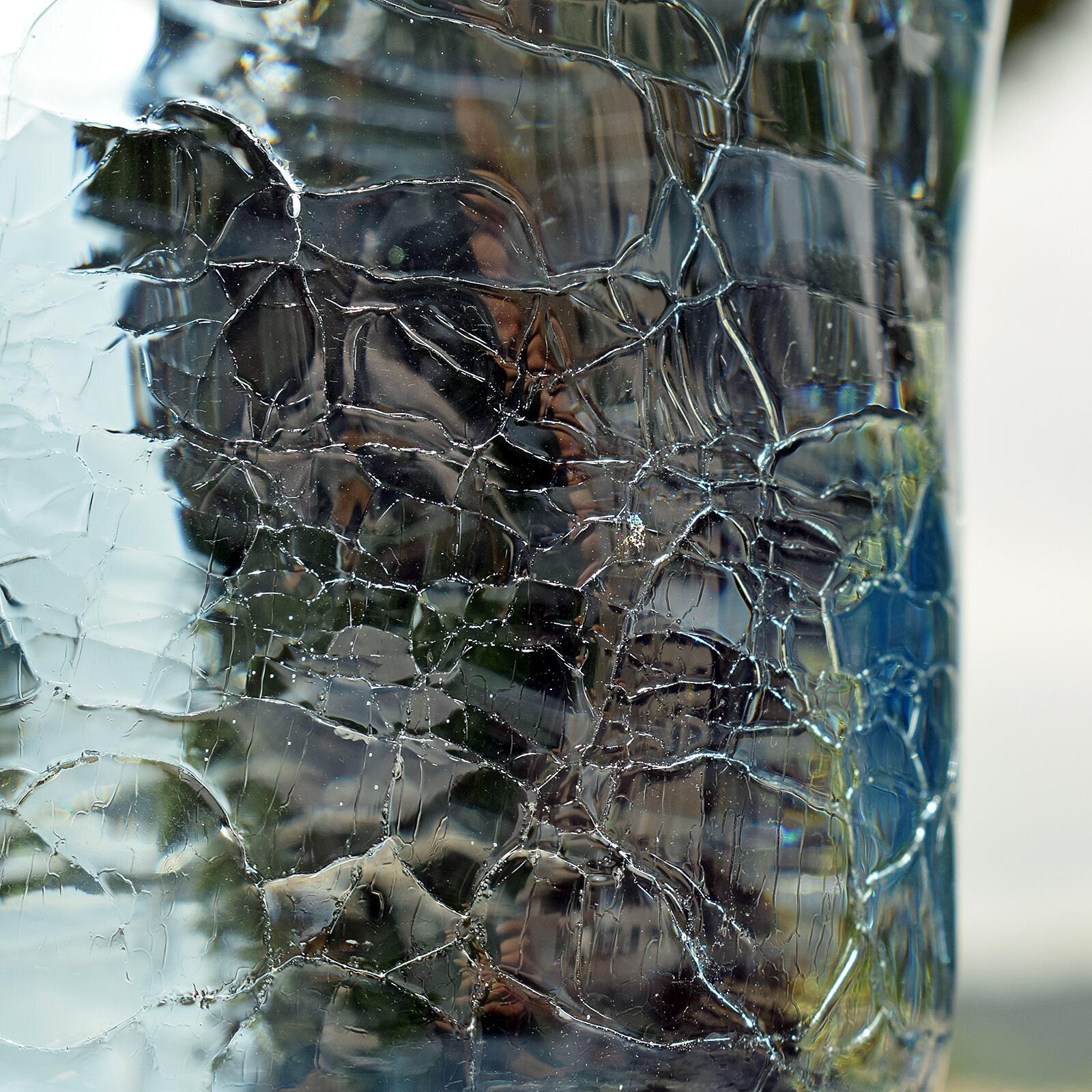 工房オリジナルカラーである「能登藍(のとブルー)」で制作したグラスになります。主張しすぎない淡く落ち着いた色合いです。人気の高い「クラック(ガラスが割れたような輝きのあるデザイン)」のグラスです。